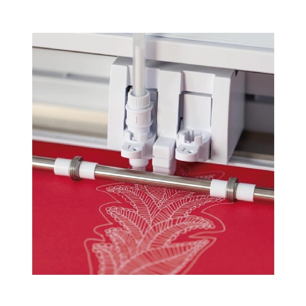 Convierta su máquina Silhouette en una herramienta de dibujo con el sostenedor de lapicera. Le permite utilizar una gama de bolígrafos, de un bolígrafo estándar más delgado a un rotulador más grueso.