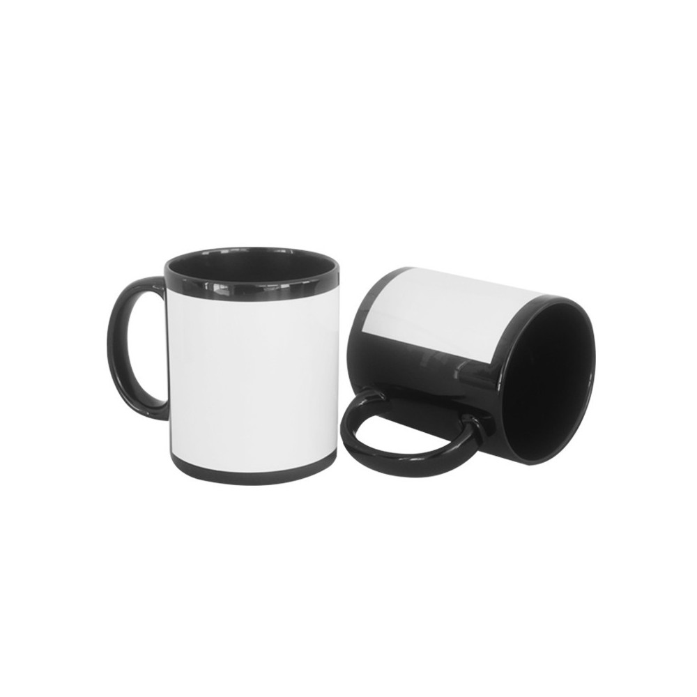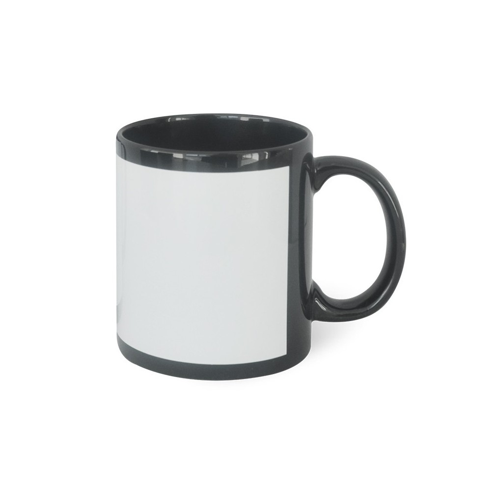 - Taza completa negra, con frente blanco (área a sublimar), excelente brillo.
