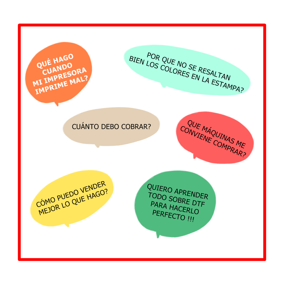 Primero es necesario que definas el TEMA dentro del cuál se encuadrará tu Curso o Consulta personalizada: * Emprendimiento en general * Marketing: Como vender? * Diseño: Programas y recursos * Técnicas y Máquinas. Luego sobre la o las TÉCNICAS: * Todas * Impresión Fotográfica * Vinilos y Ploter Cameo * Impresión Laser * Sublimación (A4 y A3) * DTF (A4 y A3) * Fabricación de Pines. Finalmente necesitaremos que definas el ENFOQUE ESPECÍFICO de tu CONSULTA o CURSO