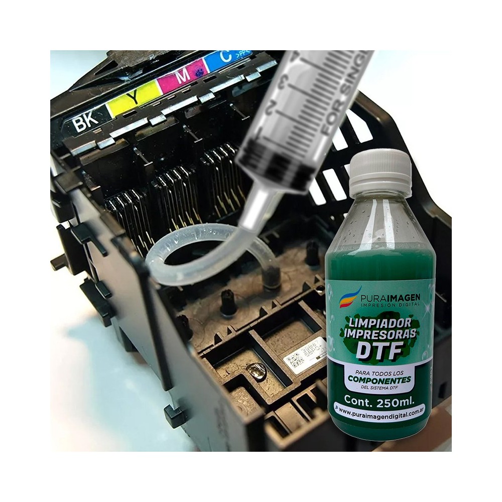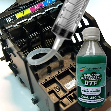 Este es un líquido profesional para destapar y limpiar cabezales de impresoras Epson, HP, Brother, Canon, etc, que se encuentran obstruídos por micro-partículas de tinta DTF que se han secado y comienzan a dar problemas a la hora de imprimir... algunos colores no imprimen, o salen mal los colores, o aparecen áreas de impresión mal impresas.