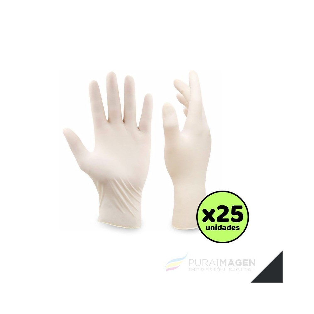 25 Guantes de latex (medianamente descartables). Para protección al trabajar con polímeros, o con tintas.