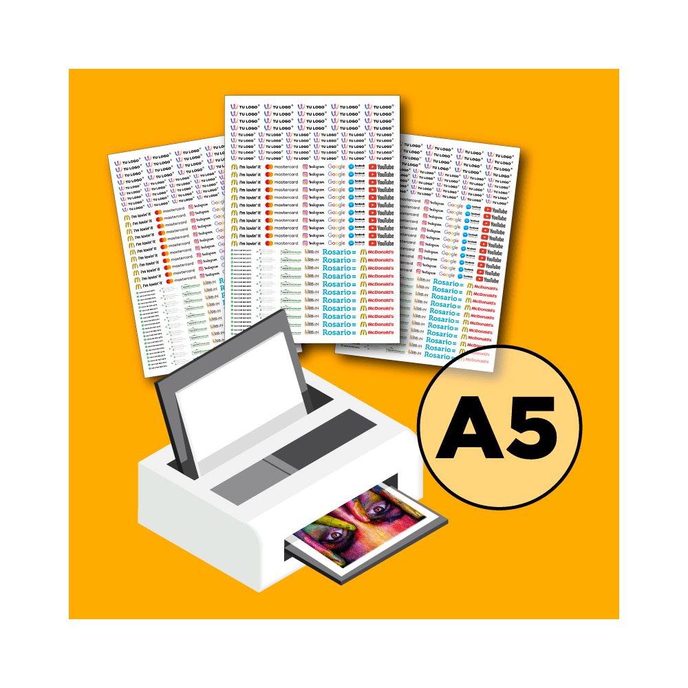 - Cada hoja del archivo debe estar configurada en A5 con un margen de al menos 0,5 mm de cada lado. (Area de impresión: 20x138,5 cm)