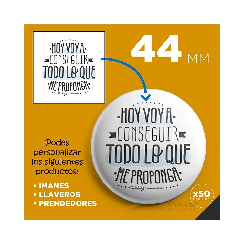 • > PRODUCTOS que corresponden a este tamaño de personalización: Pines, llaveros e imanes de 44 mm.