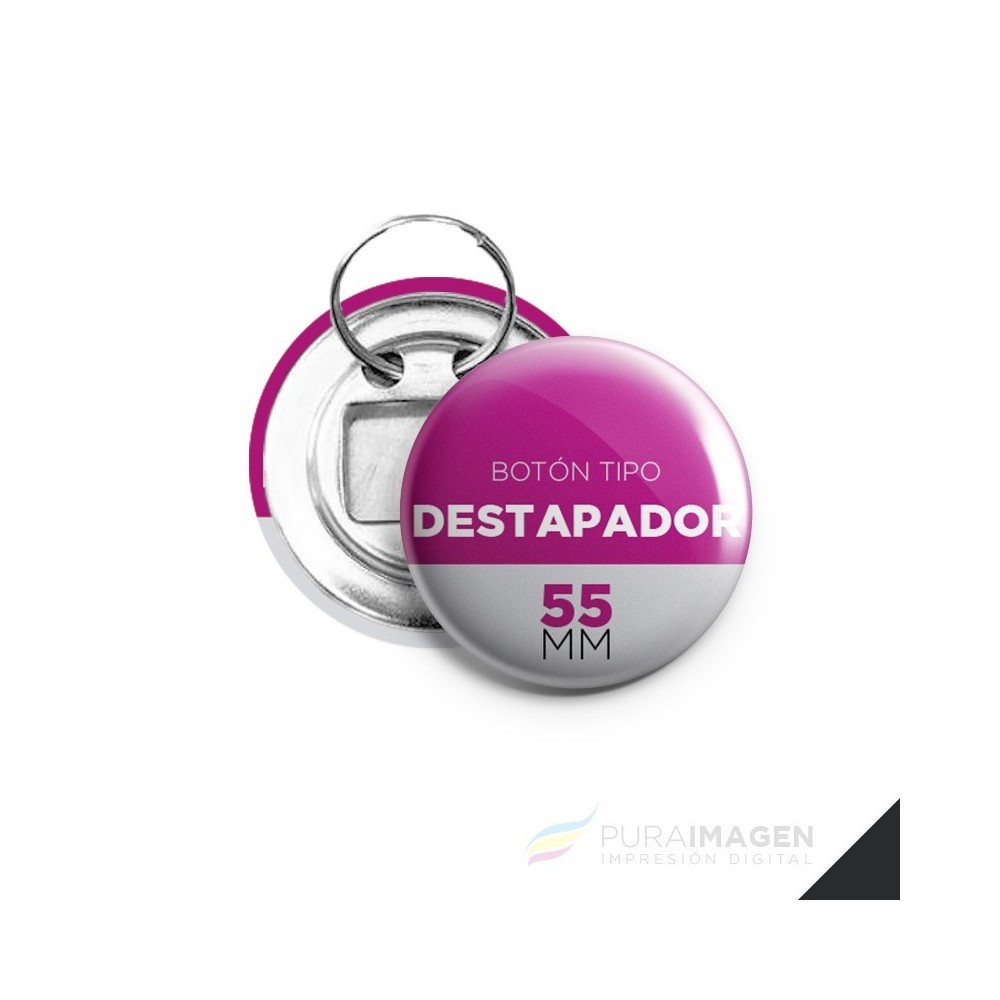 Pack de 50 Llaveros Destapadores de Ø55mm de Chapa - Tipo Pin (Botones publicitarios)