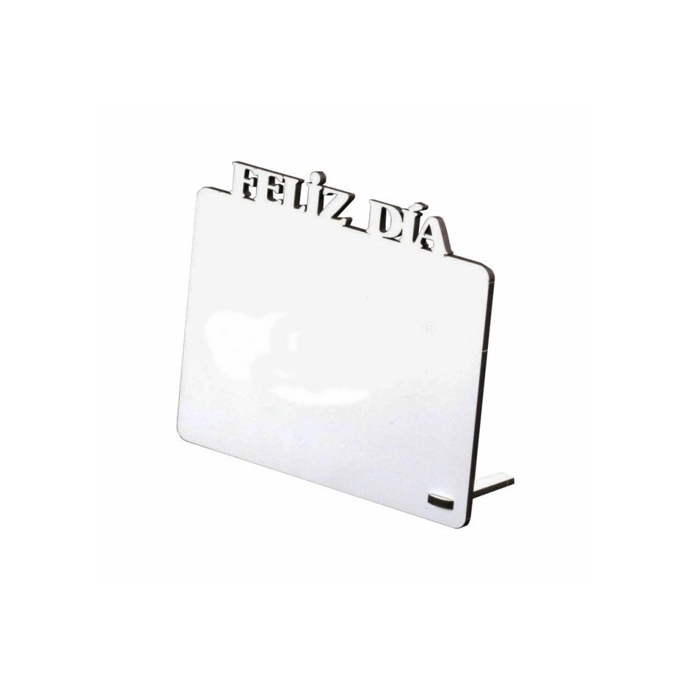 - Porta Retrato "Feliz Dia" Madera, base Blanca. Espesor: 4 mm