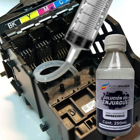 Solución de Enjuague para limpiezas de impresoras x250ml + Jeringa