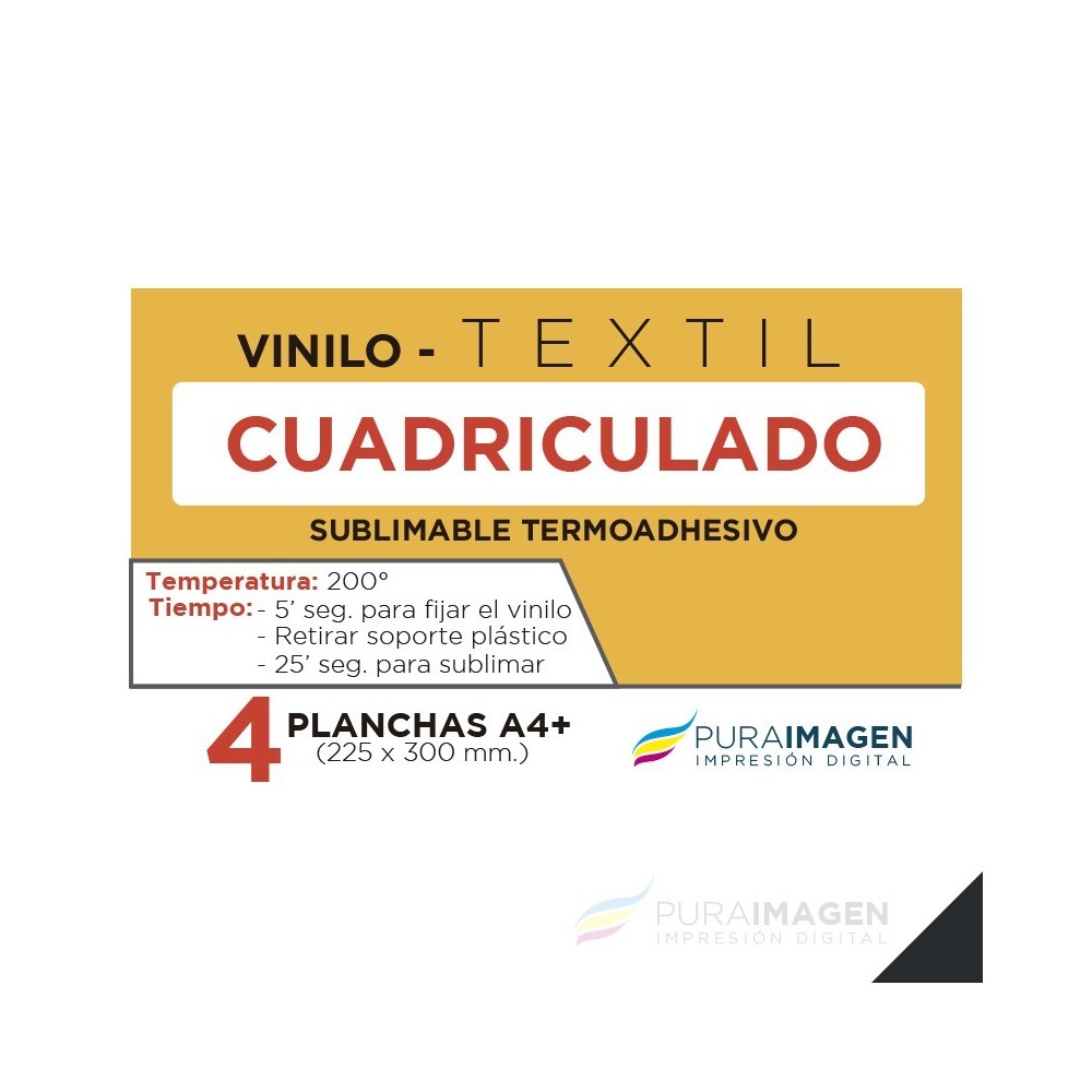 - Vinilo Termoadhesivo CUADRICULADO base BLANCA para adherir y sublimar sobre prendas de algodón oscuras o claras.