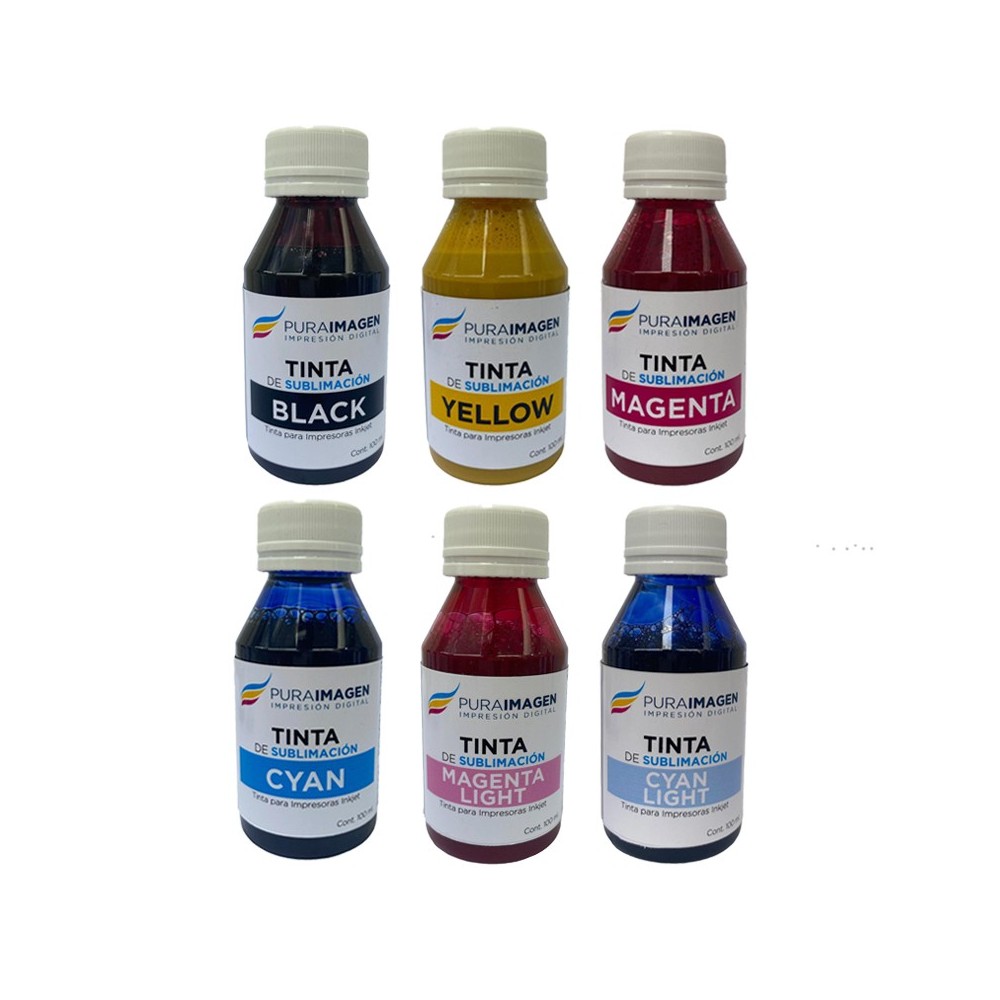 Pack de 6 Tintas de Sublimación (CMYK/Cl/Ml) x600ml - Calidad Alemana / Impresoras InkJet